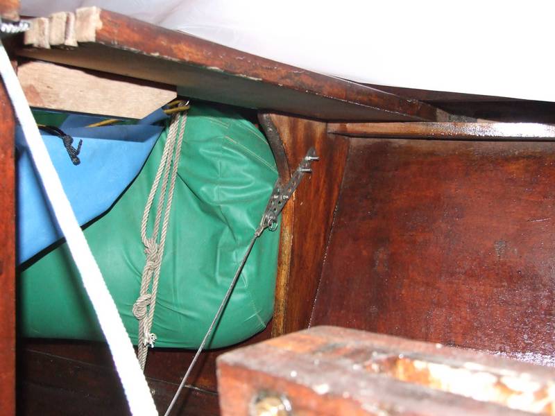 Mais en aucun cas le système ne permettra éventuellement de rigidifier la coque dans cette zone, afin d'éviter que le fond ne "poumone" ou travaille trop en flexion longitudinale dans le clapot. Et si on fait un montage en venant se reprendre au niveau de la fausse-quille, on peut répondre à ce point. C'est ce que j'ai pratiqué sur mon bateau, dans la mesure ou c'était le premier but recherché. Et non pas la tenue du gréément sous tension, vu que dans le cas présent, c'est mat en bois, donc tension modérée.