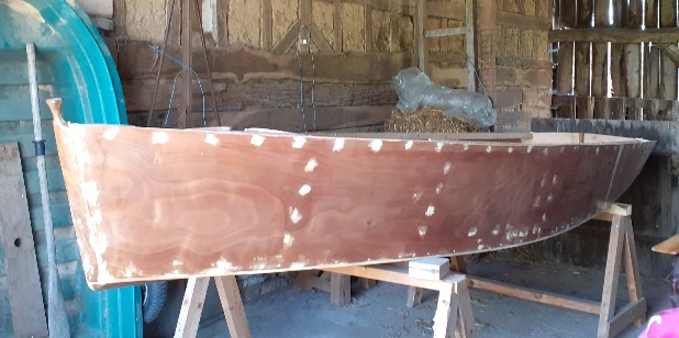 On le retrouve à l'apéro et le voilà qui nous raconte qu'il reconstruit un vaurien sur base d'une "épave" de 1959 car il n'a pas réussi à trouver les plans exacts d'un vaurien de cette époque. Intéressés on lui propose de passer voir son chantier à l'occasion d'une randonnée vélo prévue dans la semaine qui prolonge notre week-end. Nous n'avons pas été déçus et voici quelques photos des pièces démontées et de la reconstruction en cours. Participer aux événements de la classe Vaurien, c'est aussi de merveilleuses rencontres !