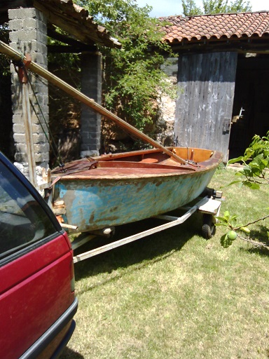Dans l'ensemble le bateau me semble sain mais il y a du boulot en perspective,principalement le plat bord tribord sera à remplacer car le bateau a été stocké sur chant et de l'eau a dû stagner et pourrir le CP.